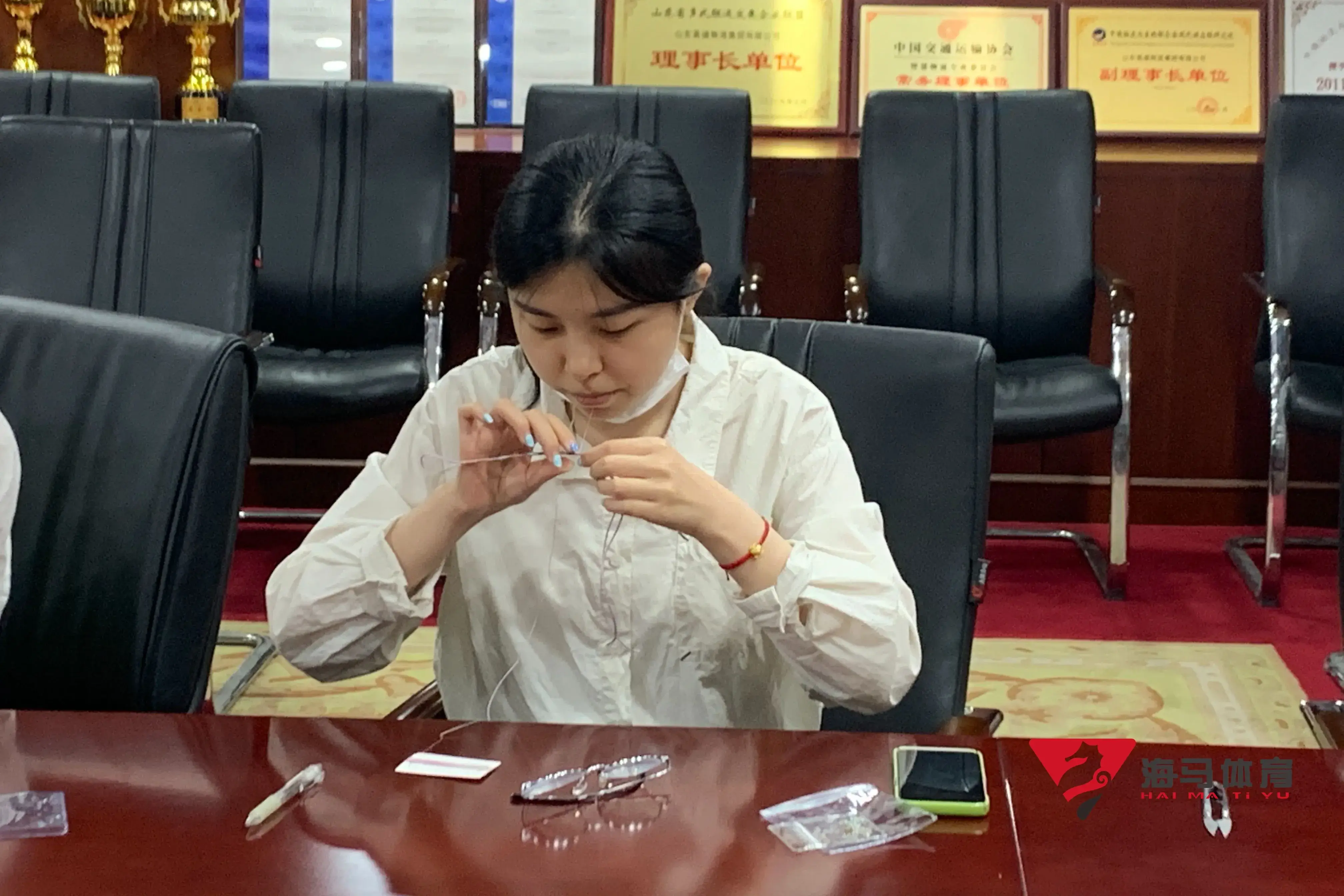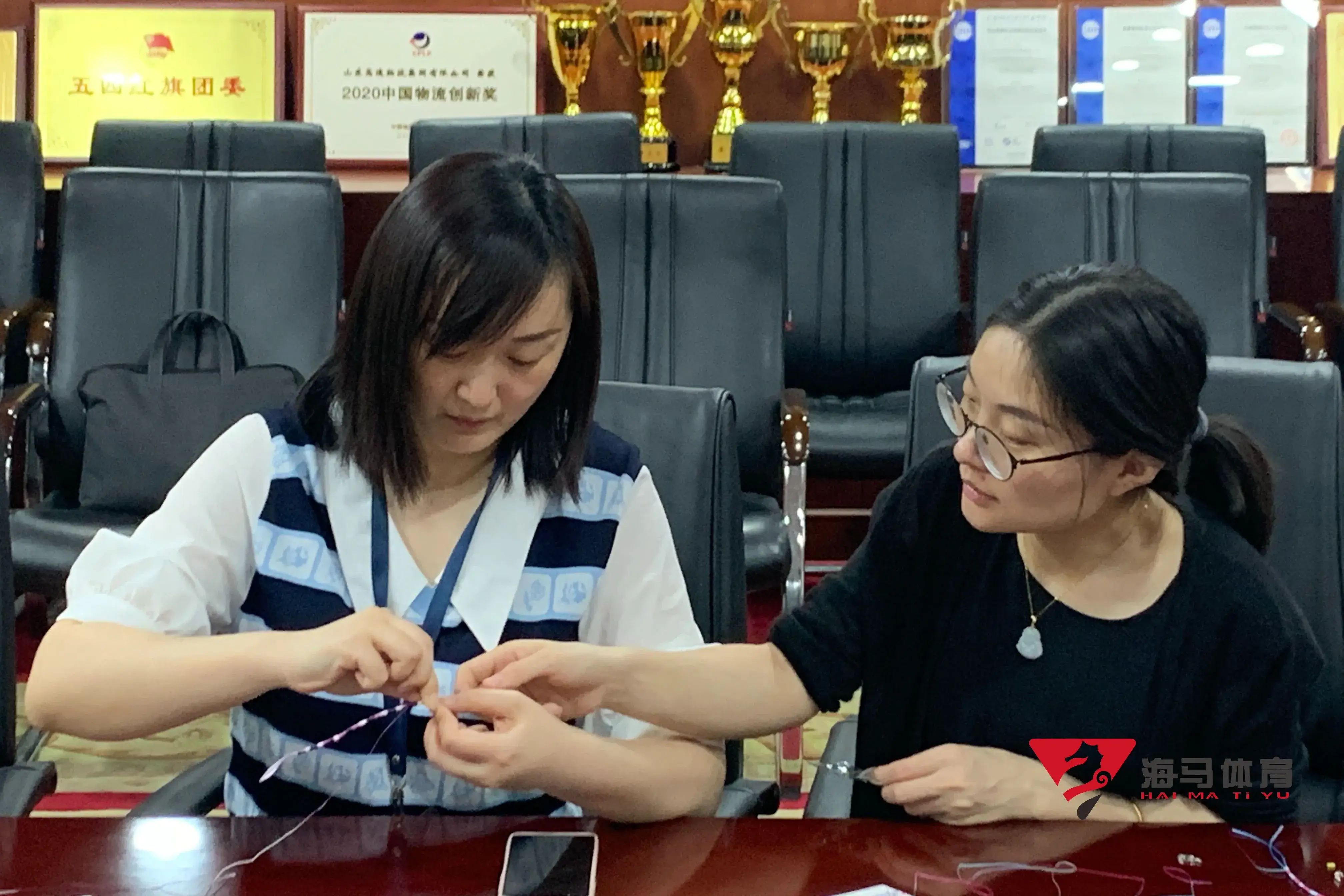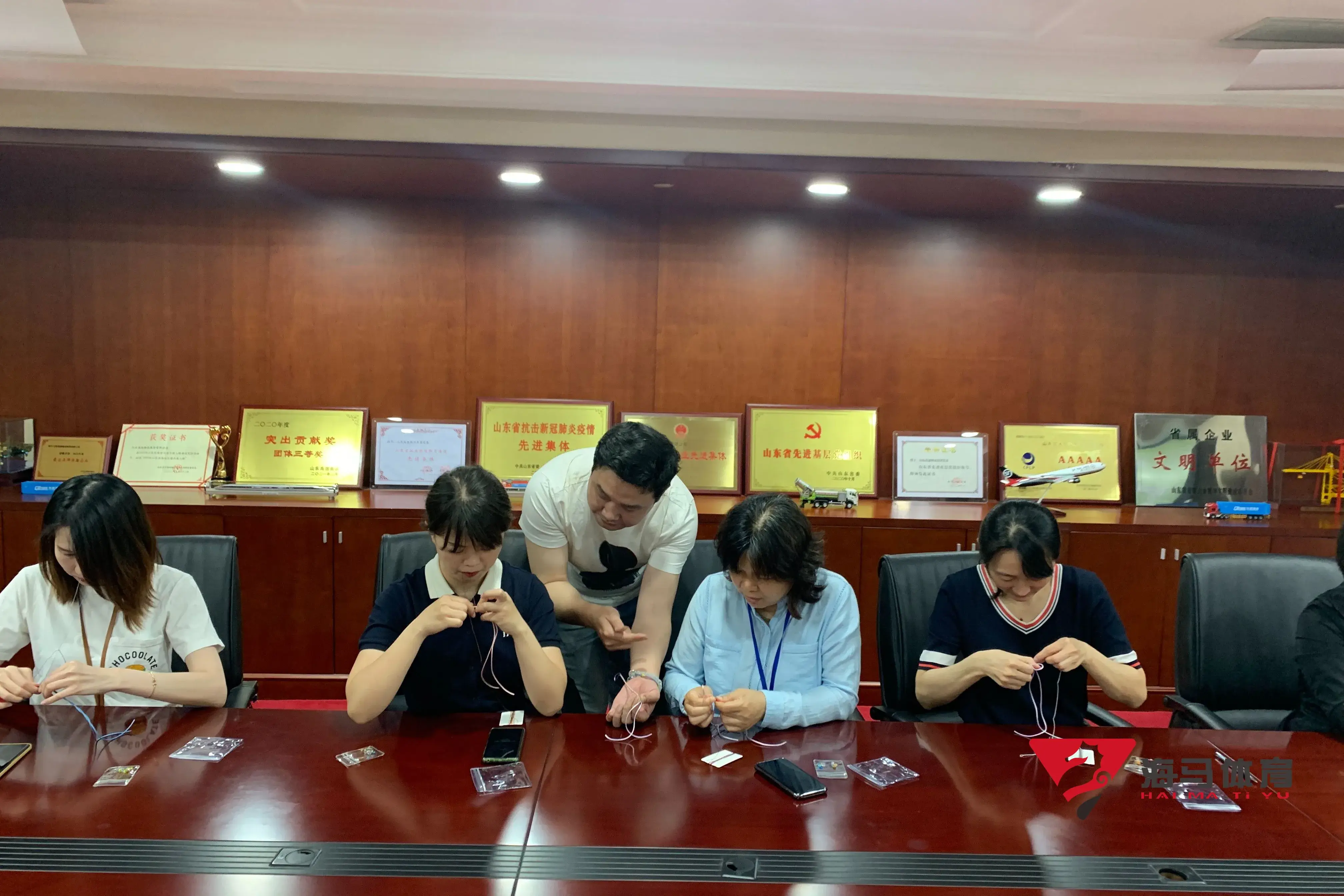 制作前,6688体育的手工老师首先介绍了端午的习俗以及端午节制作香囊与五彩绳的来历,让大家在活动前了解端午的民俗文化,手工老师将精心准备的有着美好寓意的五色彩绳、色彩绚丽的香包袋以及清香的艾草薰衣草,送到职员手中,携手制作香包和五彩绳。